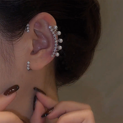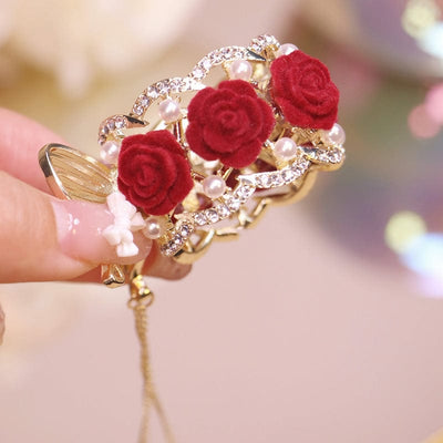 MJ01758 နှင်းဆီနှင့်ပုလဲ တွဲဖက်ထားသော ကလစ်