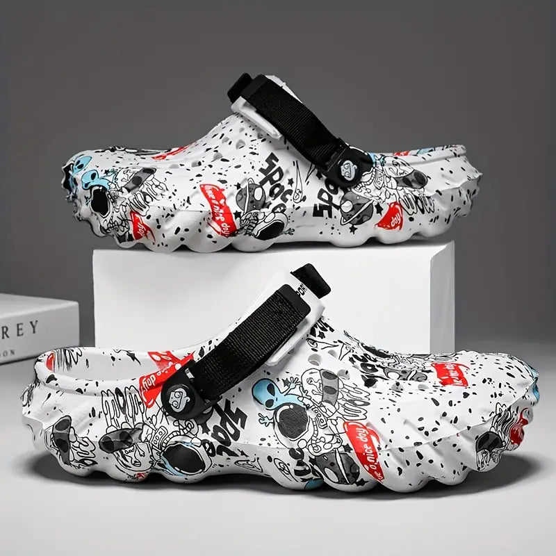 👟ပုံမှန်ဖိနပ်တစ်ရံထက် Art ပေါင်းစုံကိုတစ်နေရာထဲမှာ စီခြယ်ထားတယ်ဆို ပိုမှန်ပါလိမ့်မယ်။ Retro Punk Style ကိုမှ ကာလာဆေးရောင် စုံစုံလင်လင်နဲ့ အလန်းလွန်အလွန်လန်း အများကြားထဲမှာ ကွဲထွက်နေမယ့် Slipper တစ်ရံပါ။