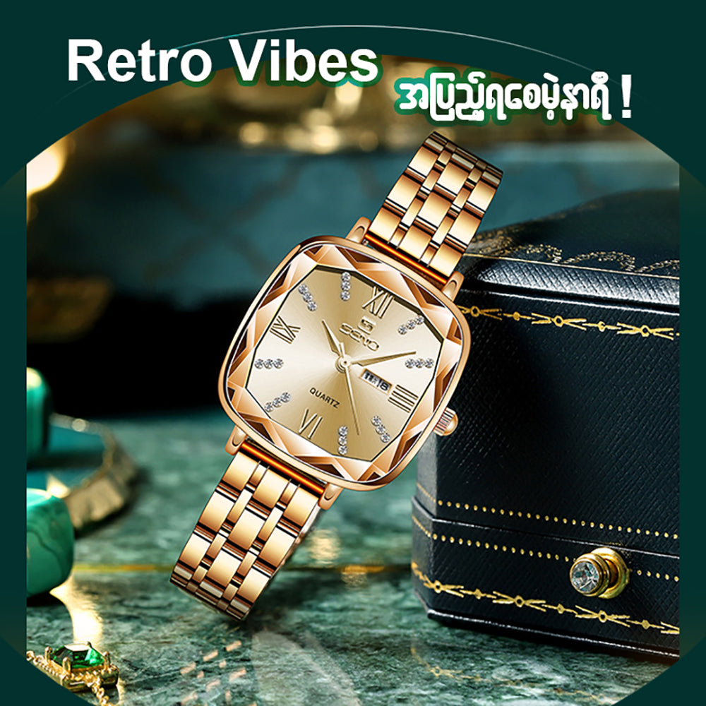 MW00319 ရွှေရောင်စတီးး ဒိုင်ခွက် မိန်းကလေးဝတ်လက်ပက်နာရီလေး