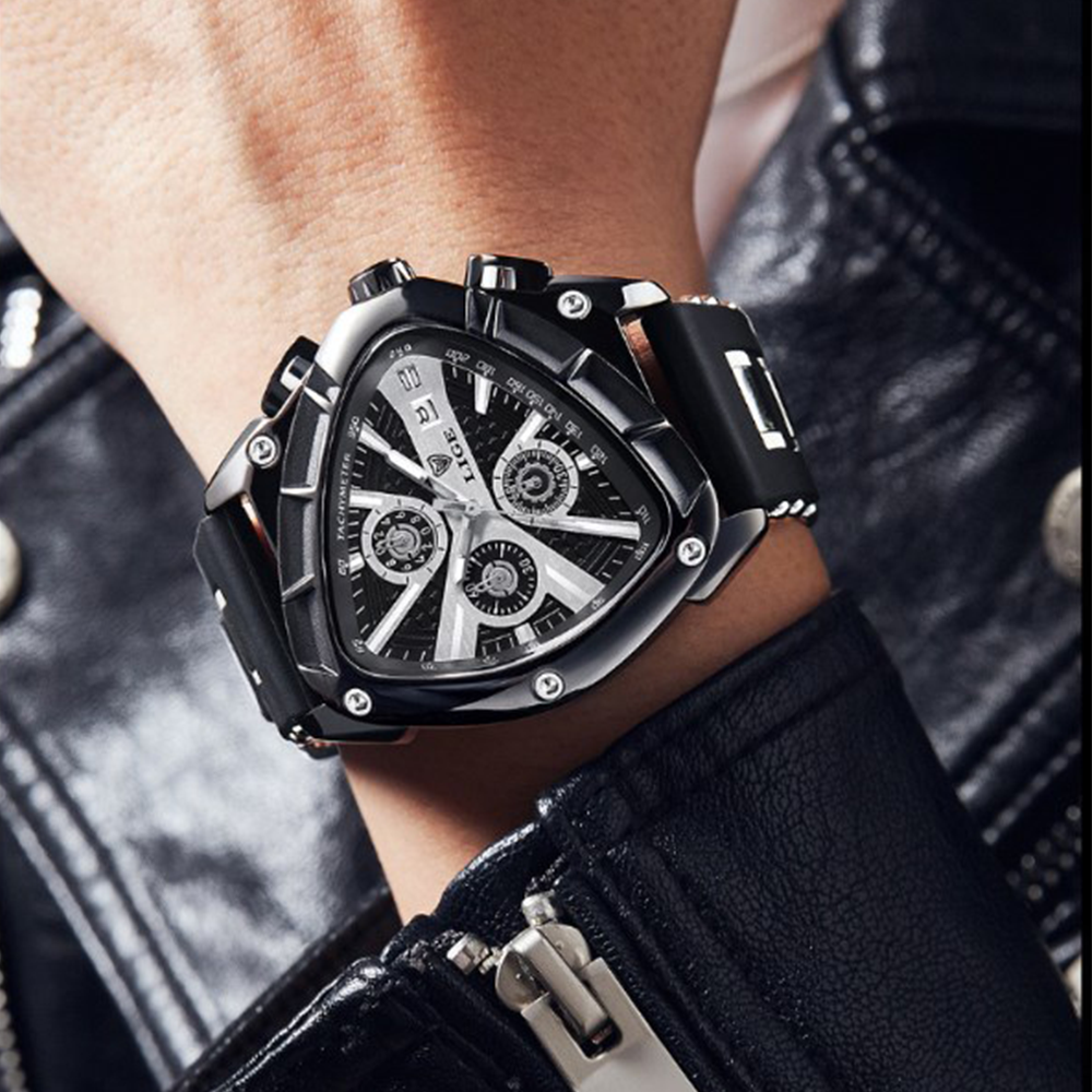ဘယ်အချိန် ကြည့်ကြည့် ရိုးမသွားတဲ့ဒီဇိုင်းလေးနဲ့ အခြားနာရီတွေနဲ့ မတူတဲ့ တြိဂံဒိုက်ခွက်ကို ထင်ပေါ်မှုနဲ့ အတူ တောက်ပြောင်သစ်လွင်တဲ့ ခံစားမှုကို ရရှိစေမယ့် နာရီလေး မိတ်ဆက်ပေးပါမယ် ရှင့် ....
